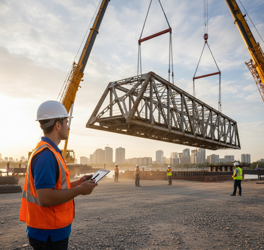 O sucesso de um içamento depende não apenas de um bom planejamento, mas também de uma execução supervisionada com rigor técnico e segurança. O acompanhamento operacional garante que cada etapa seja realizada conforme o plano, assegurando a correta utilização dos equipamentos, a amarração adequada das cargas e o cumprimento de todas as normas de segurança.