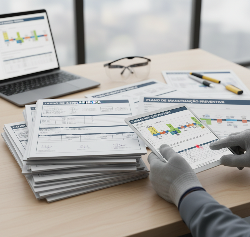 A segurança e a confiabilidade dos equipamentos dependem de inspeções criteriosas e de um planejamento adequado de manutenção. Os laudos técnicos de inspeção fornecem um diagnóstico detalhado sobre as condições de uso, identificando riscos, desgastes ou não conformidades que podem comprometer a operação. Já o plano de manutenção preventiva organiza e programa intervenções antes que ocorram falhas, garantindo maior vida útil dos ativos, redução de custos e continuidade operacional.
